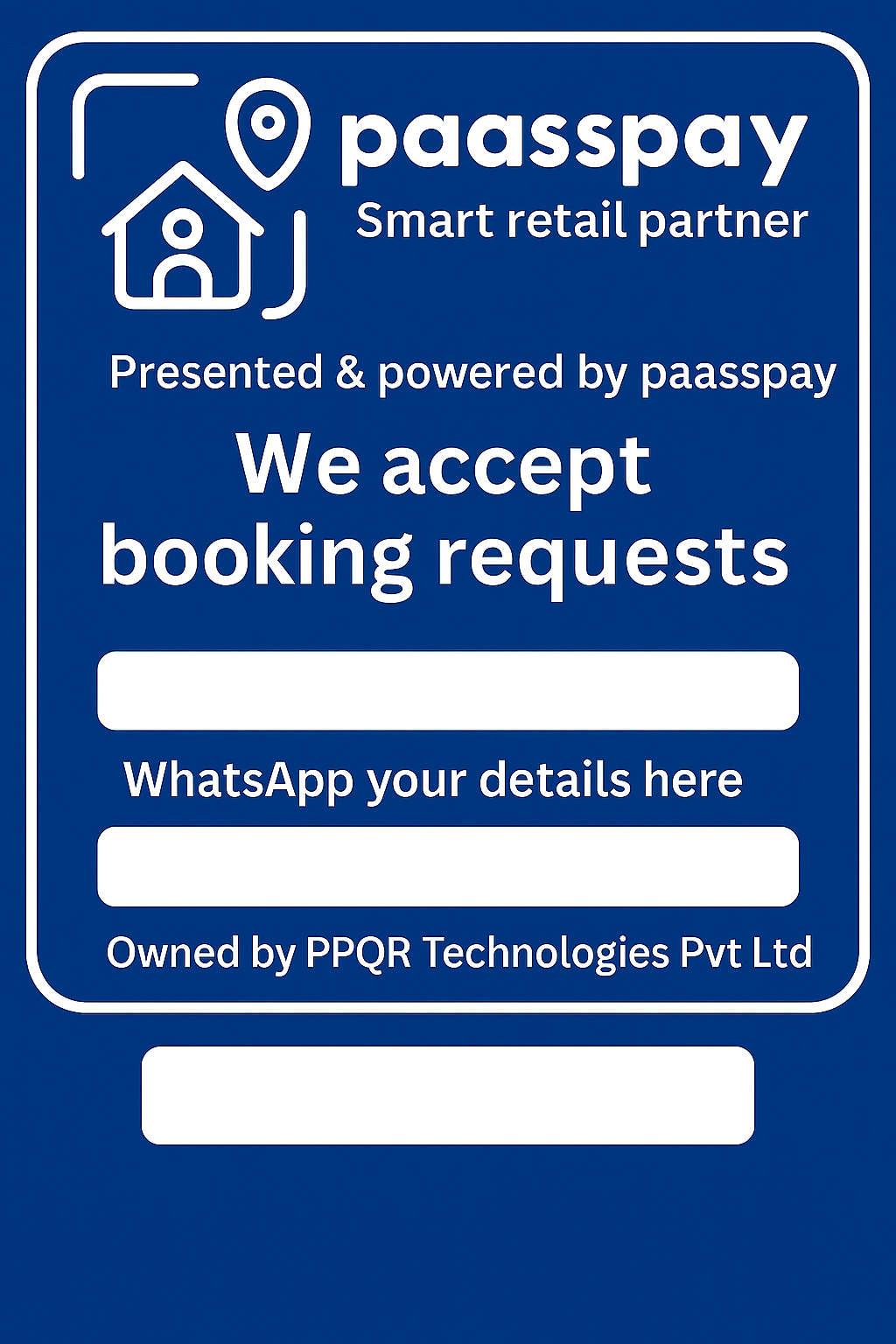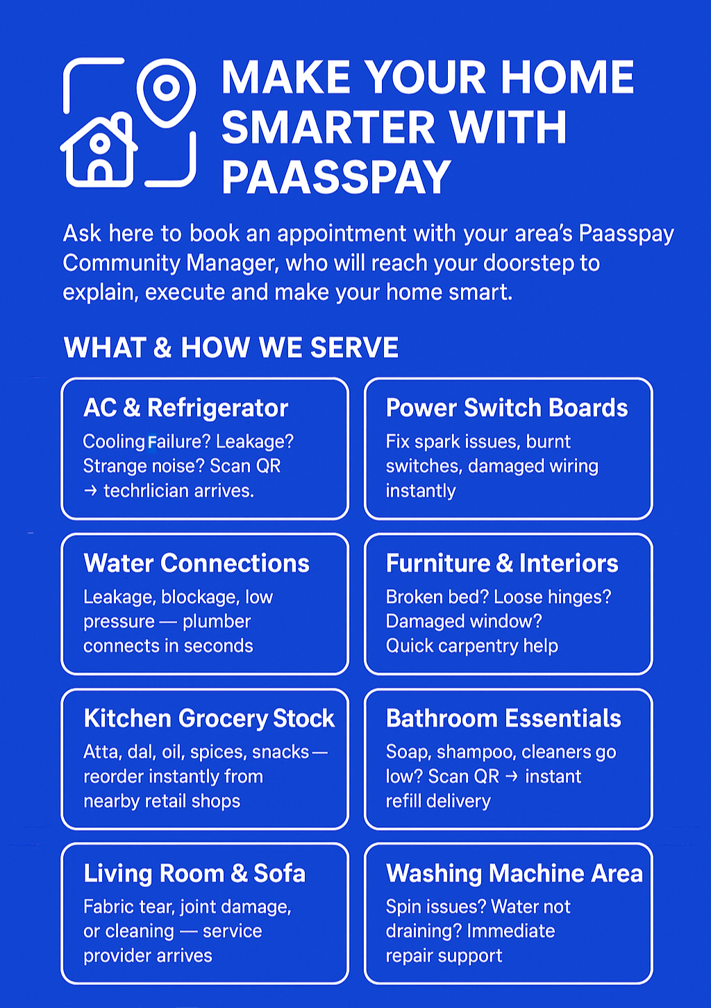 Paasspay is building a revolutionary ecosystem where every home and business is directly connected to nearby verified service providers using smart QR systems. No waiting, no searching β just scan the QR placed on your device or facility (like a refrigerator, AC, or kitchen appliance) and book reliable service instantly.